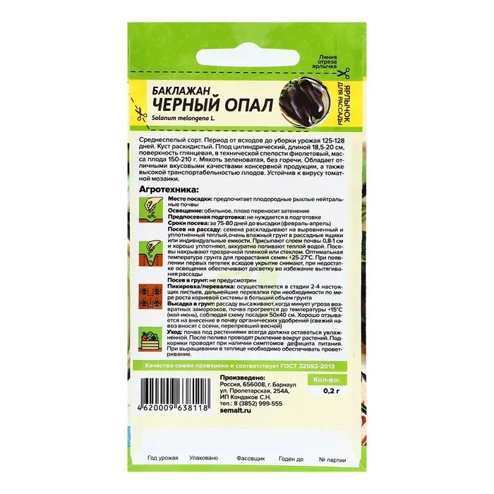 Семена Баклажан "Черный Опал", Сем. Алт, ц/п, 0,2 г