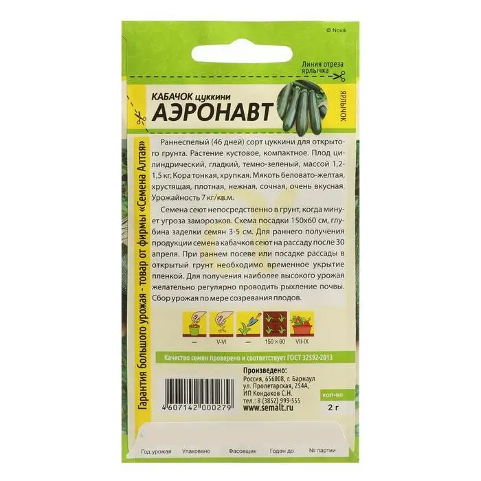 Семена Кабачок "Аэронавт", цуккини, Сем. Алт, ц/п, 2 г