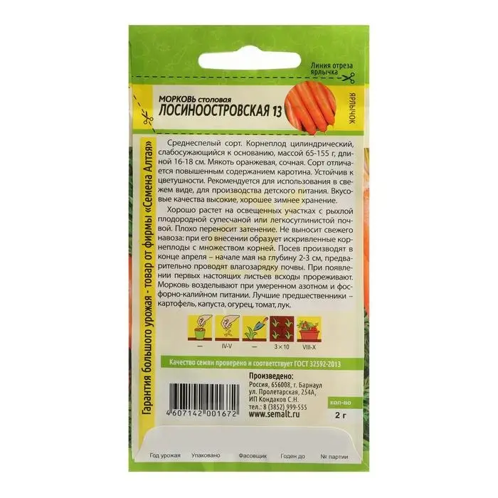 Семена Морковь "Лосиноостровская 13", Сем. Алт, ц/п, 2 г