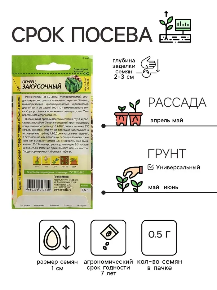 Семена Огурец "Закусочный", Сем. Алт, ц/п, 0,5 г