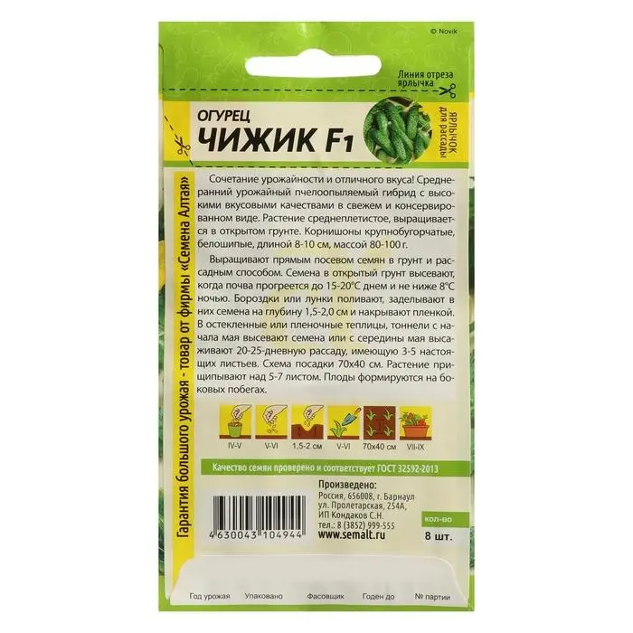 Семена Огурец "Чижик", F1, Сем. Алт, ц/п, 8 шт
