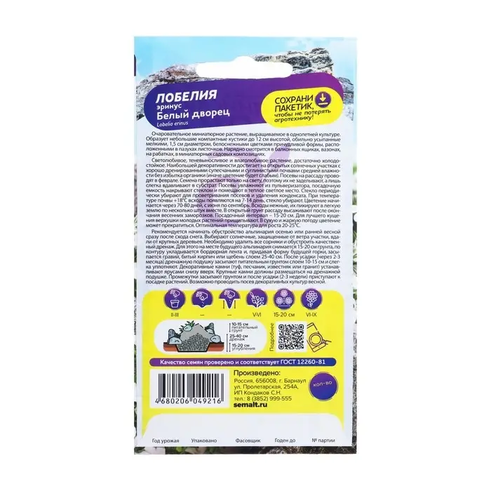 Семена цветов Лобелия "Белый Дворец" плетистая, 0,02 г
