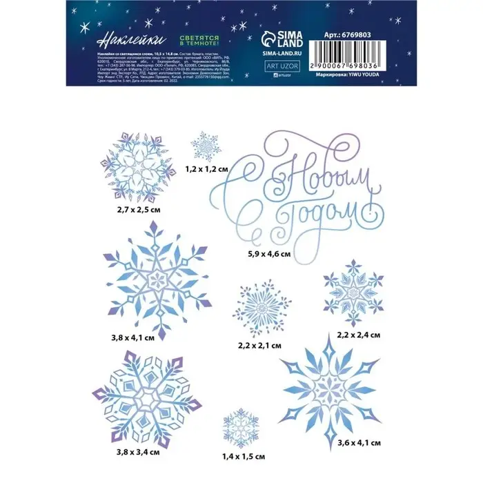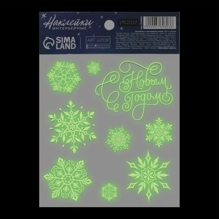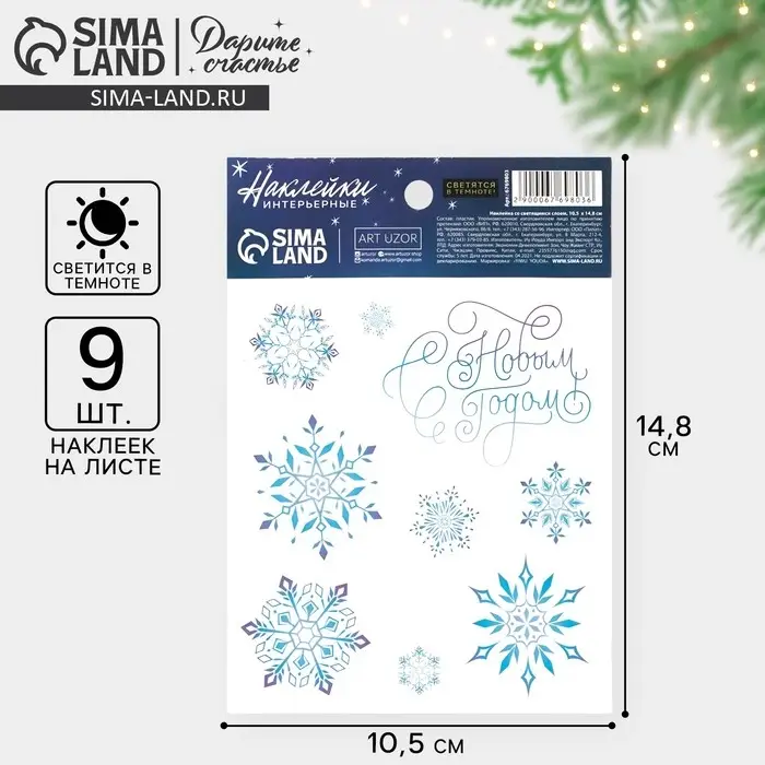 Наклейка со светящимся слоем «Снежинки», 10,5 х 14,8 см