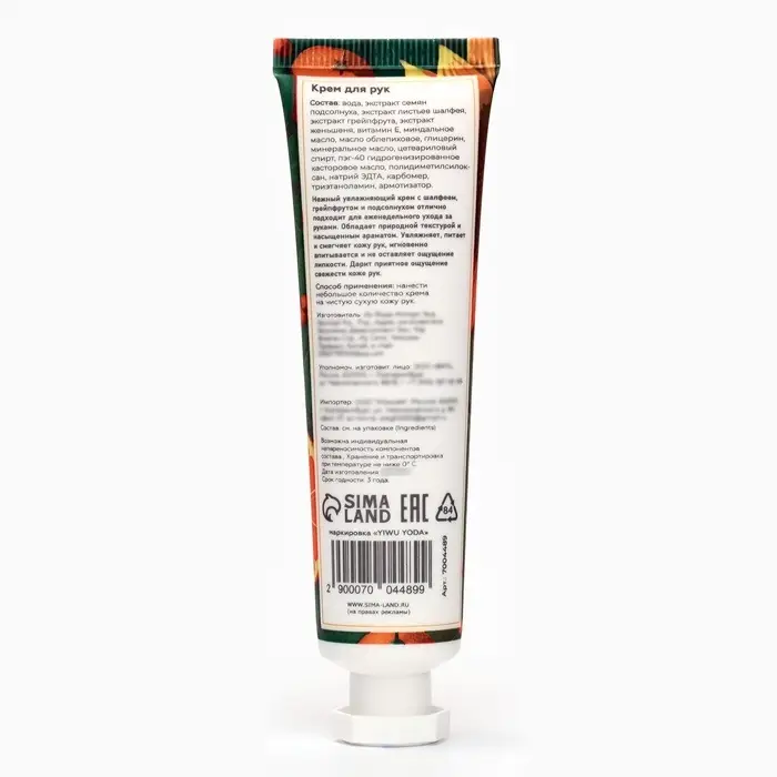 Способ применения: нанести небольшое количество крема на чистую сухую кожу рук.