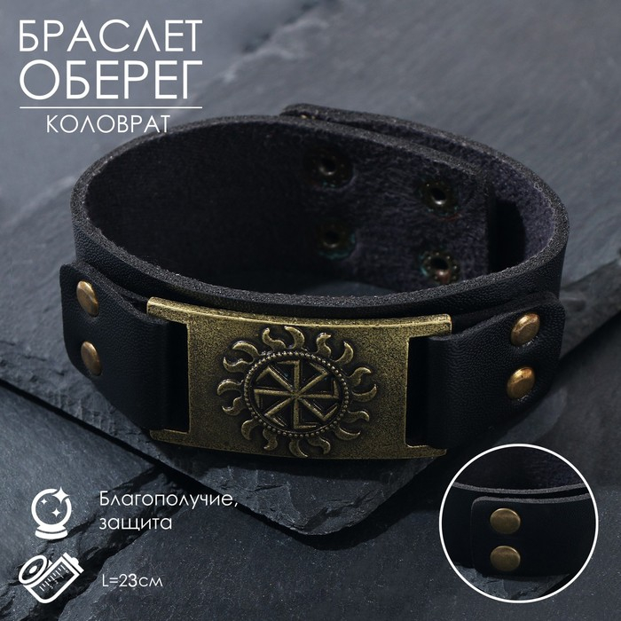 Браслет-оберег «Коловрат» солнце, цвет чёрный с чернёным золотом, 23 см