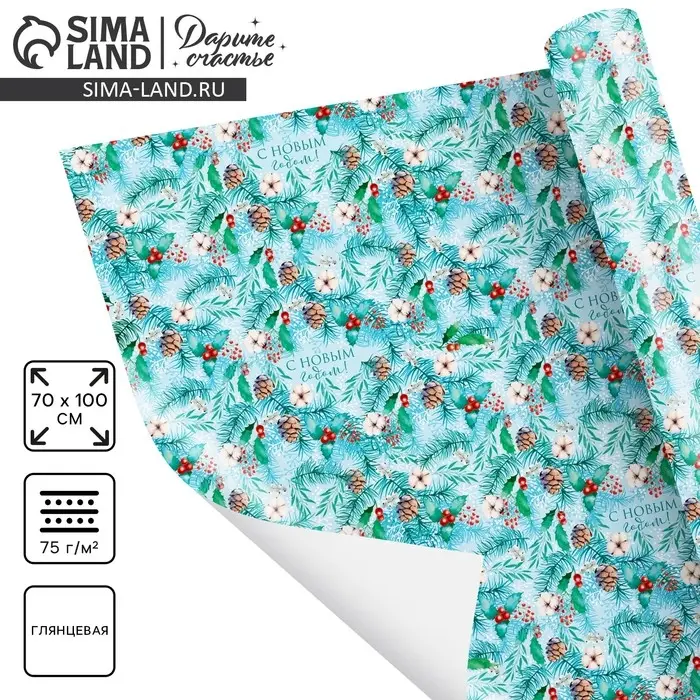 Упаковочная бумага на новый год «Зимняя», 70 х 100 см, глянцевая