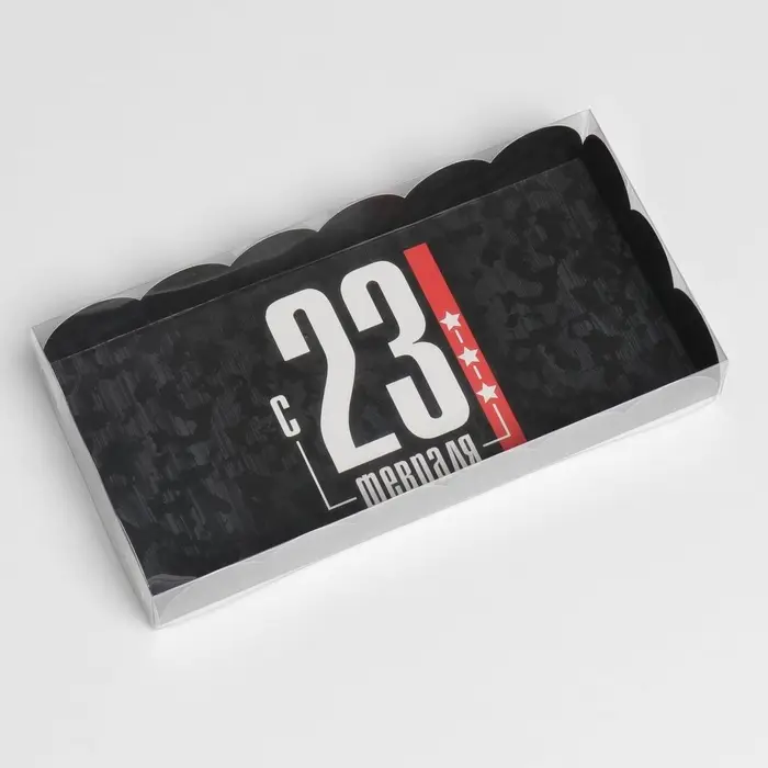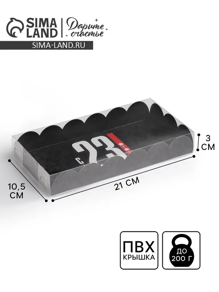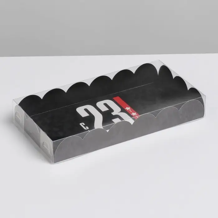 Коробка для печенья, кондитерская упаковка с пластиковой крышкой, «23 февраля», 10.5 х 21 х 3 см