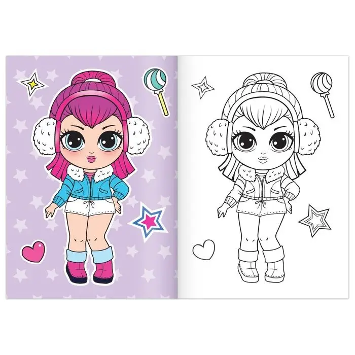 - Внутри ребёнок найдёт 8 образов для раскрашивания.