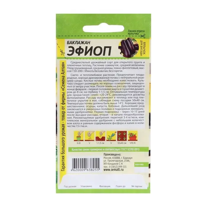 Семена Баклажан "Эфиоп", Сем. Алт, ц/п, 0,2 г