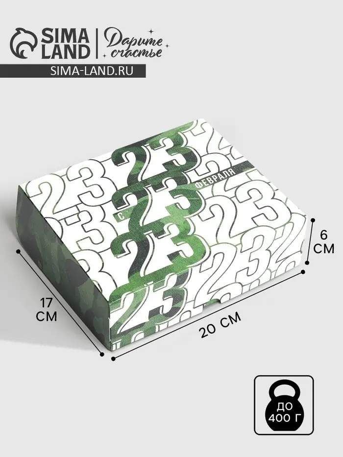 Кондитерская упаковка, коробка «23 февраля», 17 х 20 х 6 см