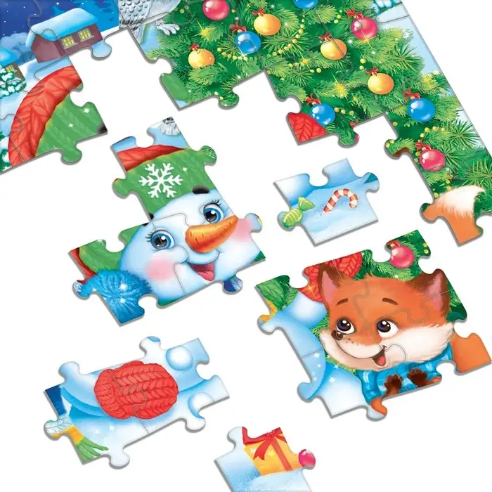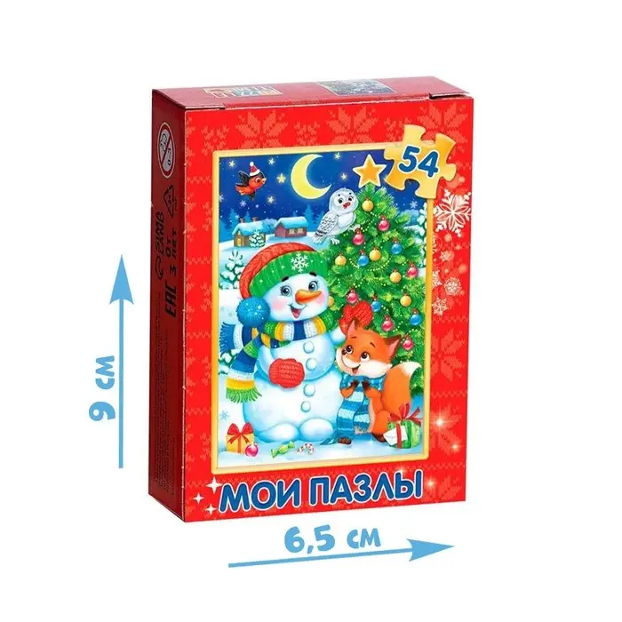 Пазл «Снеговик и лисёнок» — то, что нужно для полезного и интересного досуга! Такой подарок поможет ребёнку скрасить ожидание Нового года, а также потренировать мелкую моторику, внимательность, логическое мышление и память.