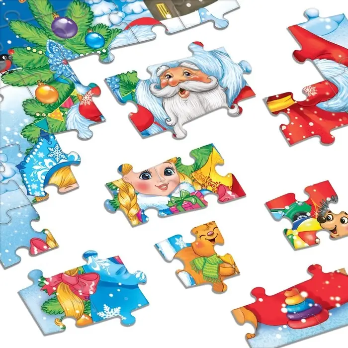 Пазл «Дедушка Мороз и Снегурочка» — то, что нужно для полезного и интересного досуга! Такой подарок поможет ребёнку скрасить ожидание Нового года, а также потренировать мелкую моторику, внимательность, логическое мышление и память.