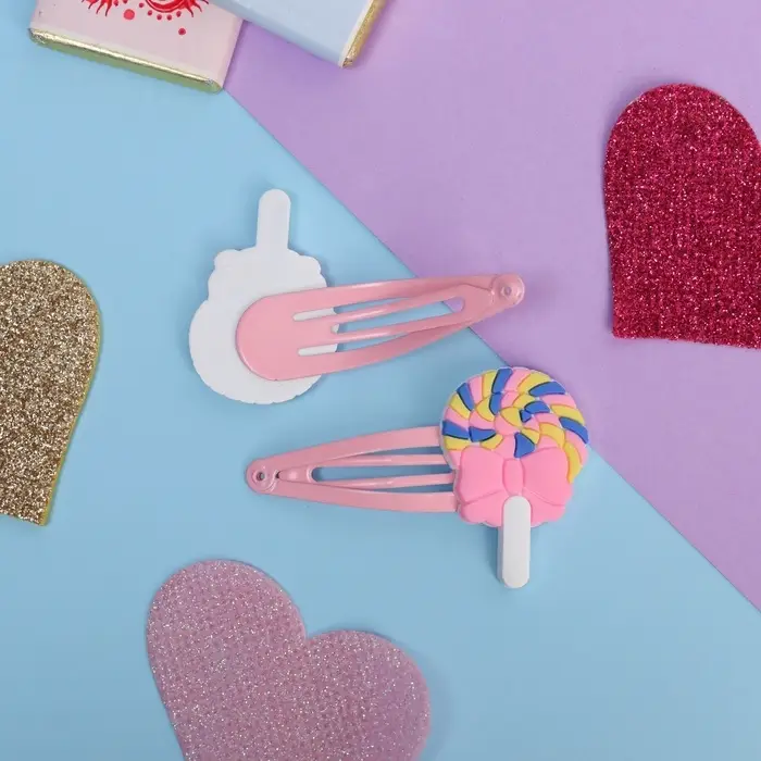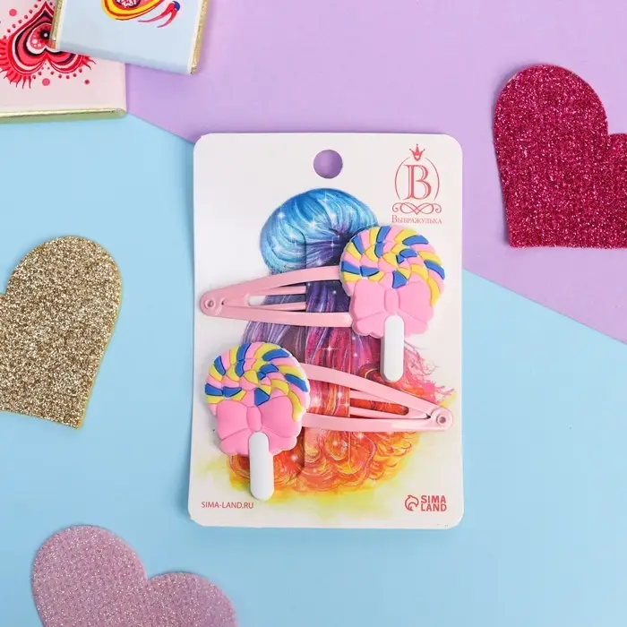 Невидимка для волос "Абель" (набор 2 шт) леденцы, 5,5 см, розовый