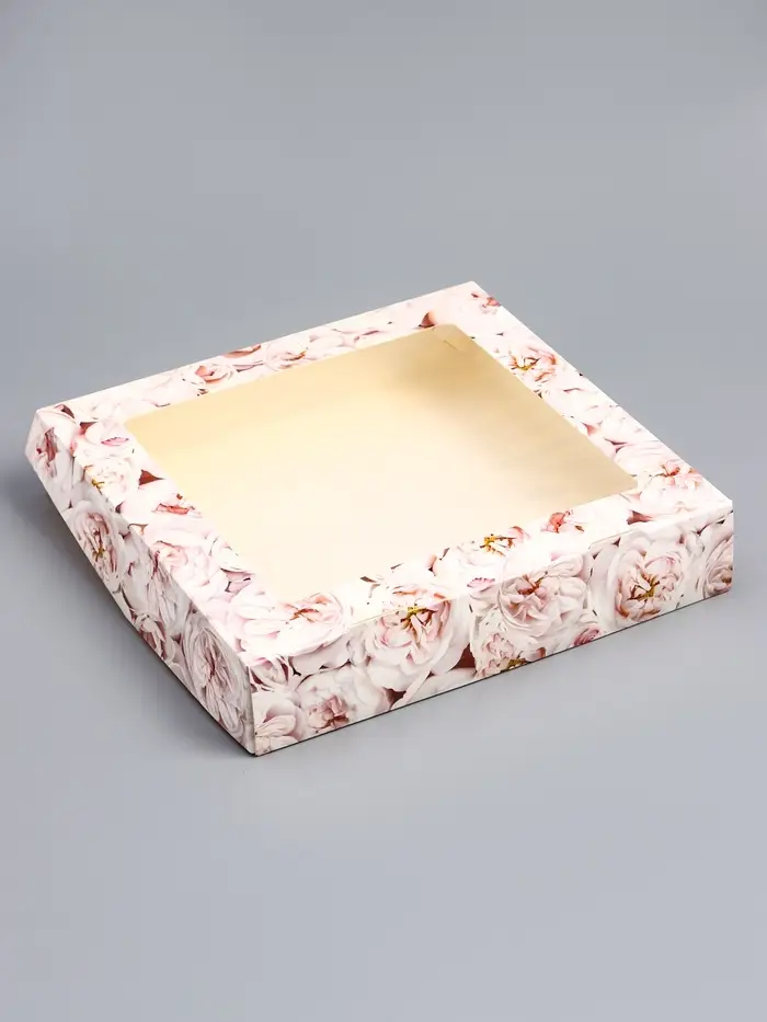Коробка складная, крышка-дно, "Цветочки", 24 х 17 х 8 см с окном