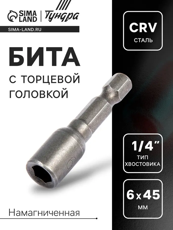 Бита с торцевой головкой ТУНДРА, сталь CrV, магнит, 6 х 45 мм