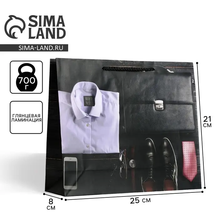 Пакет подарочный ламинированный, упаковка, «Стиль», ML 21 х 25 х 8 см