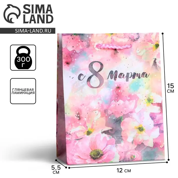 Пакет подарочный ламинированный, упаковка, «С 8 марта», S 12 х 15 х 5.5 см