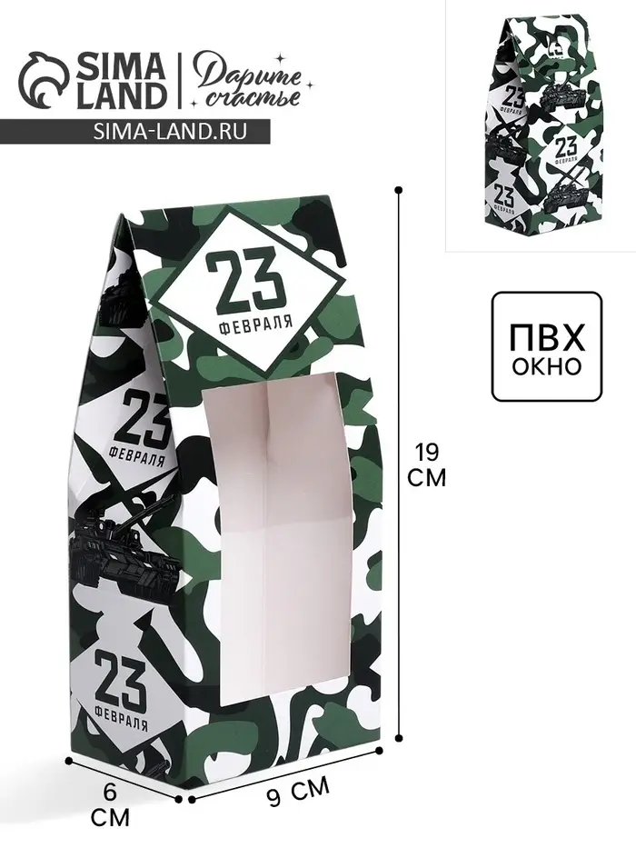 Коробка кондитерская, упаковка, «23 февраля», 9 х 19 х 6 см