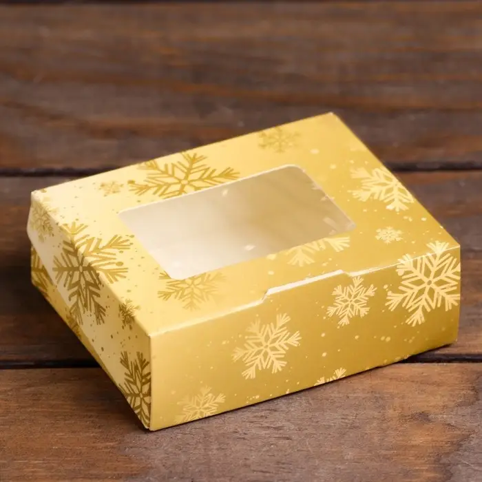 Коробка подарочная новогодняя складная «Золотые снежинки», 10×8×3.5 см