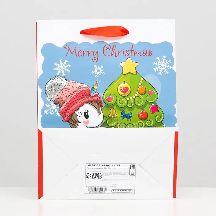 Пакет ламинированный "Новогодняя единорожка" 18 х 23 х 10