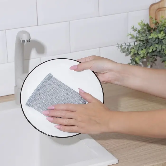 - Стильный дизайн: серебристый цвет губки прекрасно впишется в любой интерьер кухни.