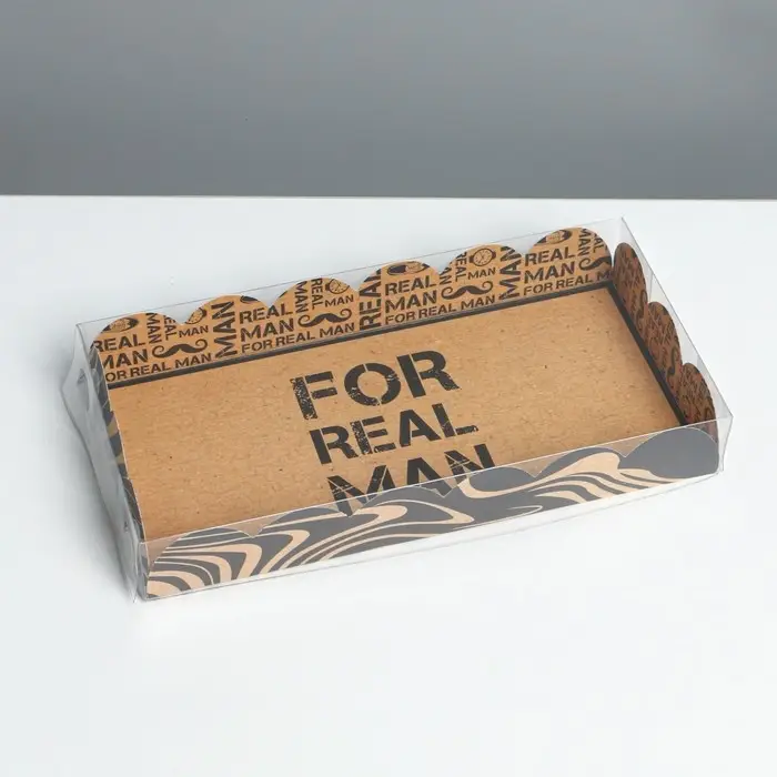 Коробка для печенья, кондитерская упаковка с пластиковой крышкой, «Настоящему мужчине», 10.5 х 21 х 3 см
