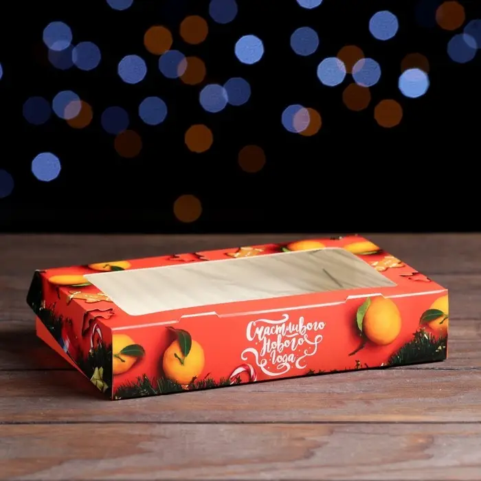 Коробка складная, крышка-дно, "Цветочки", 24 х 17 х 8 см с окном