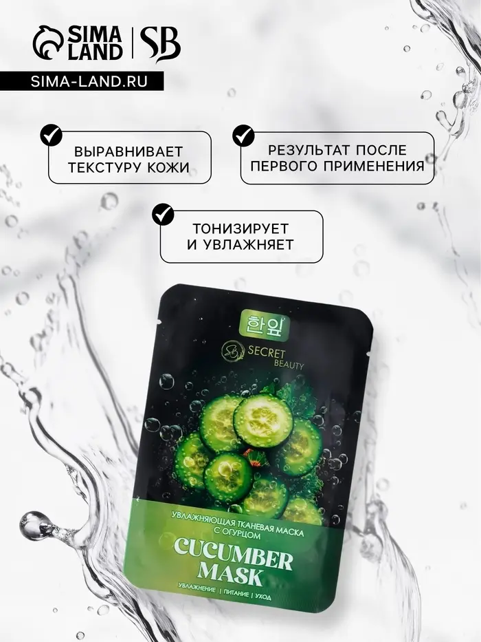 Тканевая маска для лица на основе экстракта огурца, который содержит полисахариды, витамины, энзимы, минералы, микроэлементы и эффективно увлажняет кожу, оказывает антиоксидантное действие, успокаивает, осветляет, избавляет её от жирного блеска, тонизирует увядающую и уставшую кожу, а также обладает регенерирующими свойствами.