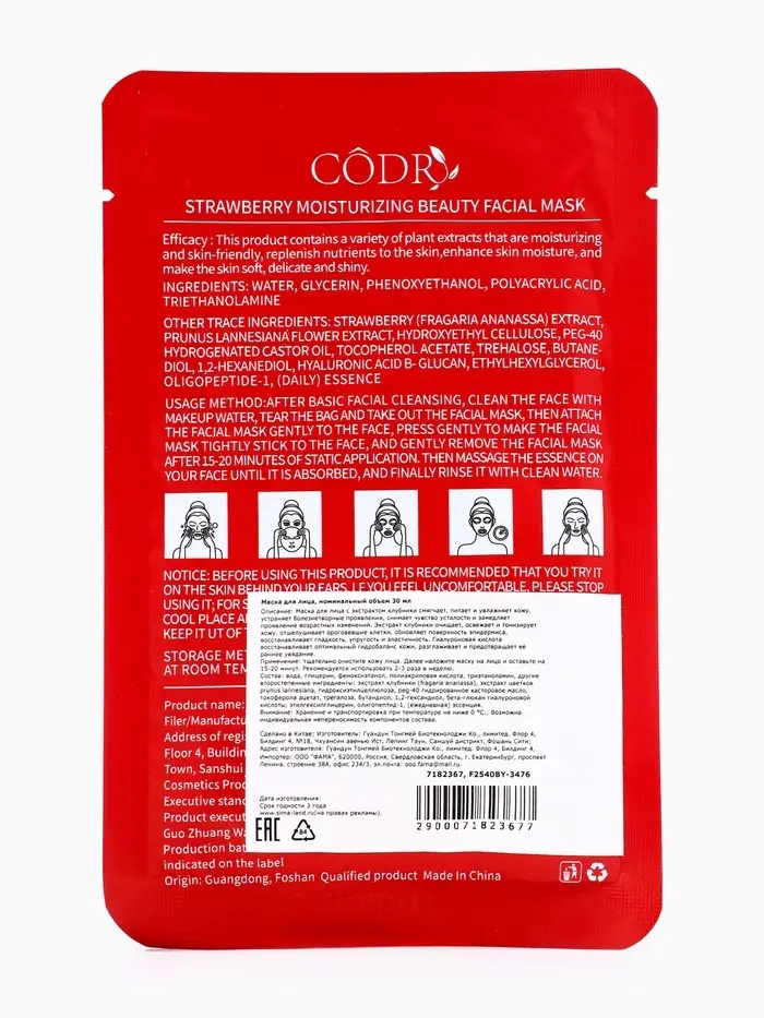 Тканевая маска для лица с клубникой, увлажняющая