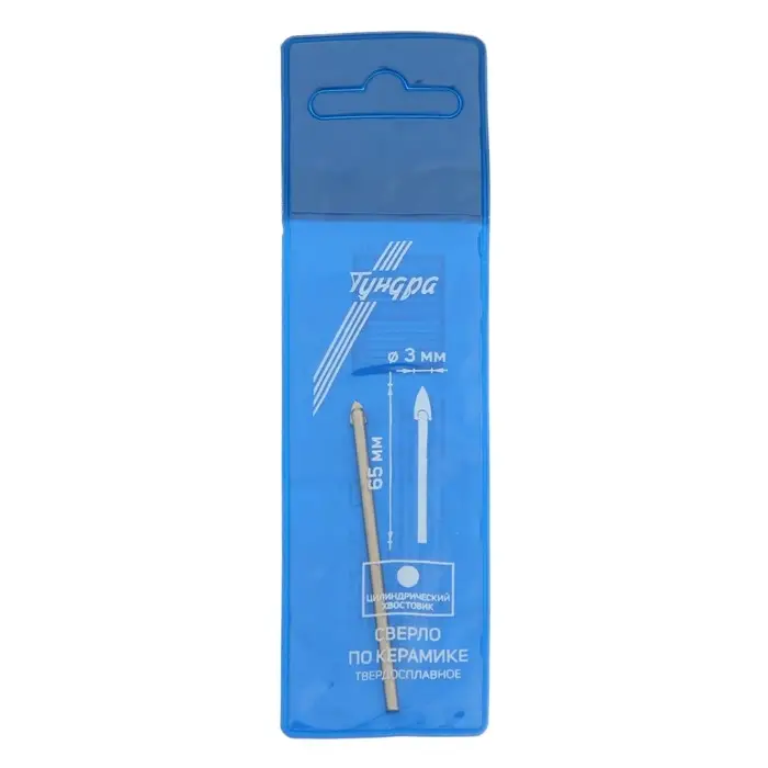 Сверло по керамике твердосплавное ТУНДРА, цилиндрический хвостовик, 3 мм