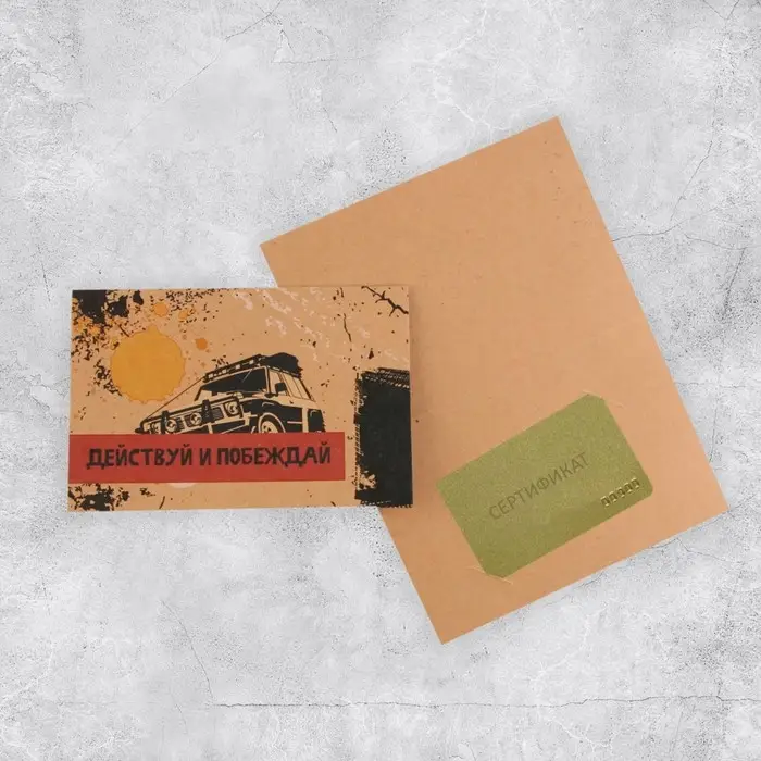 Открытка под подарочный сертификат «Действуй и побеждай», крафт, 10×15 см