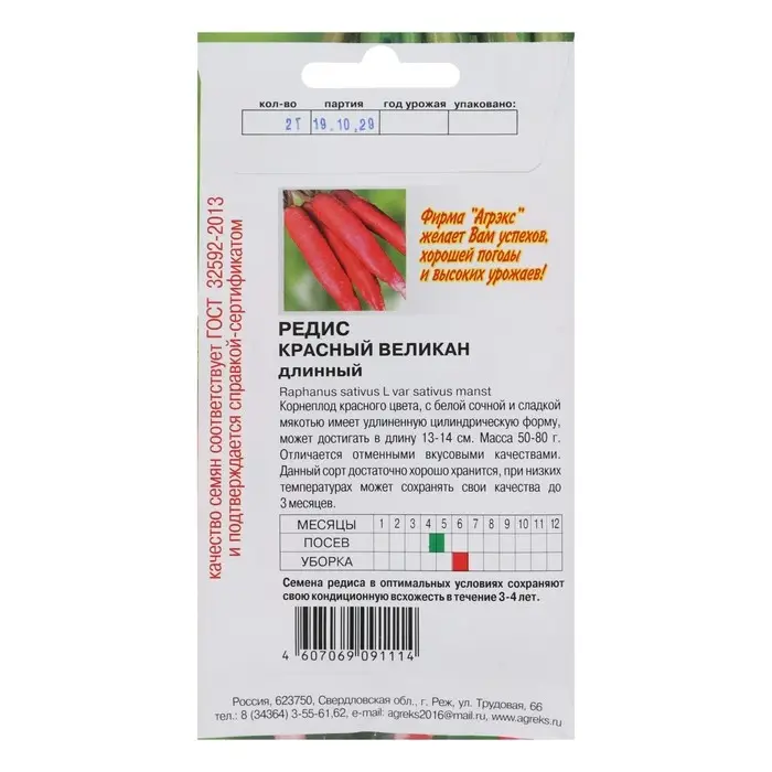 Семена Редис "Красный великан", 2 г