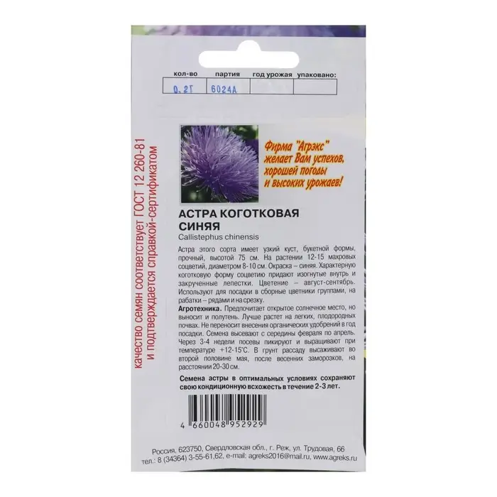 Семена Цветов однолетние Астра "Коготковая Синяя", 0,2 г