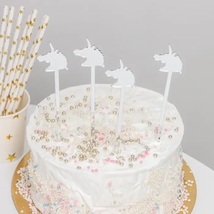 Набор топперов для торта «Единороги, 4 шт., серебристые