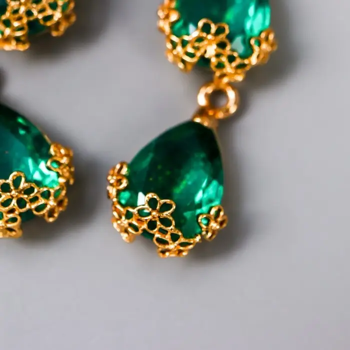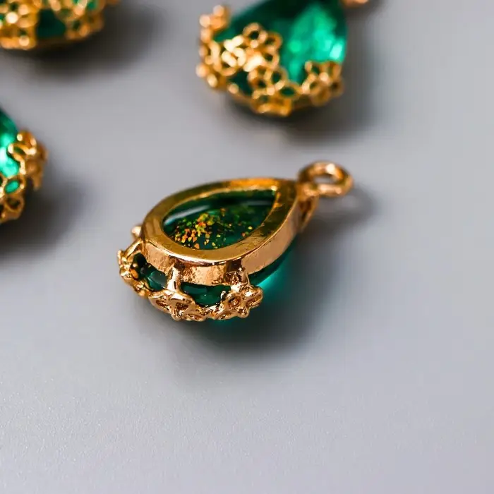 Декор для творчества пластик "Капля с золотыми цветочками" морская волна кристалл 2х1,2 см