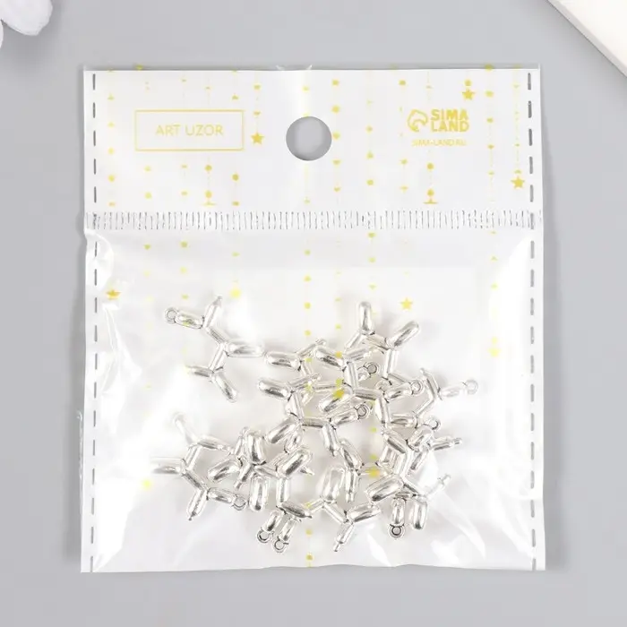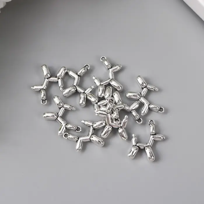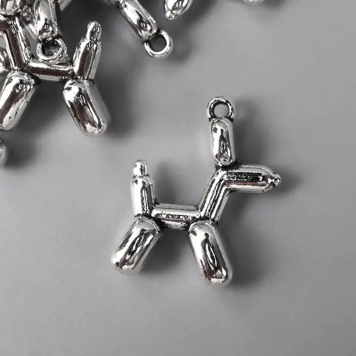 Металлический элемент, декоративная подвеска «Арт Узор. Надувной шарик: собака», серебро, 1.5×2 см