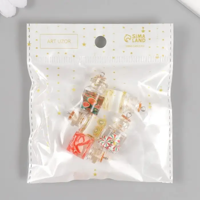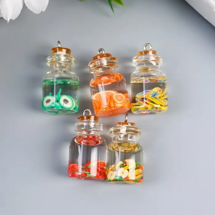 Подвеска для творчества стекло, пластик "Фрукты в колбе" МИКС 2,8х1,5 см