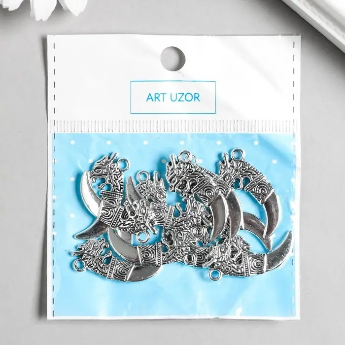 Металлический элемент, декоративная подвеска «Арт Узор. Клык дракона», серебро, 2.9×1.3 см