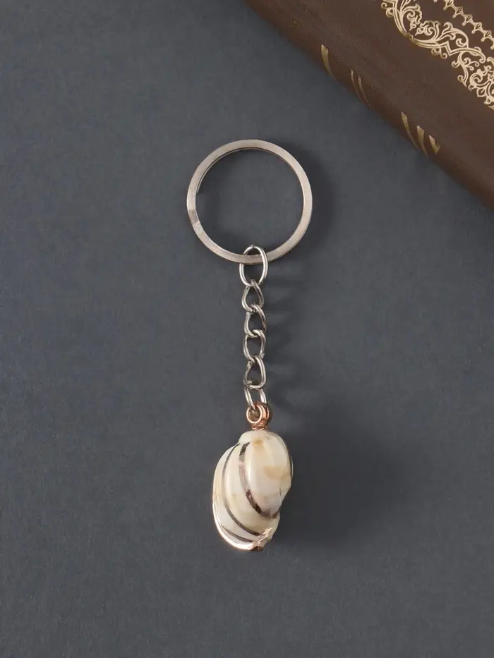Брелок пластик "Ракушка в клетку" с золотом 3х2х1,2 см