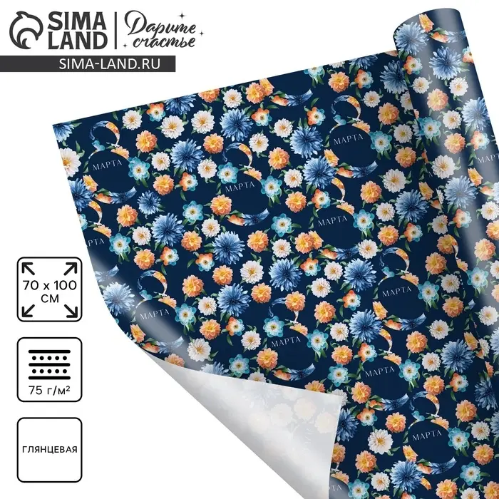 Бумага упаковочная глянцевая «8 марта», 70 х 100 см