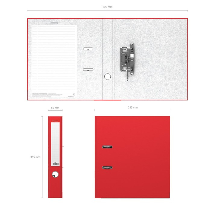 Папка-регистратор А4, 50 мм, ErichKrause Standard, бумвинил, с этикеткой на корешке, нижний металлический кант, красная