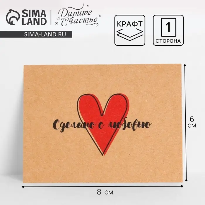 Открытка-мини для бизнеса «Сделано с любовью», крафт, 8×6 см