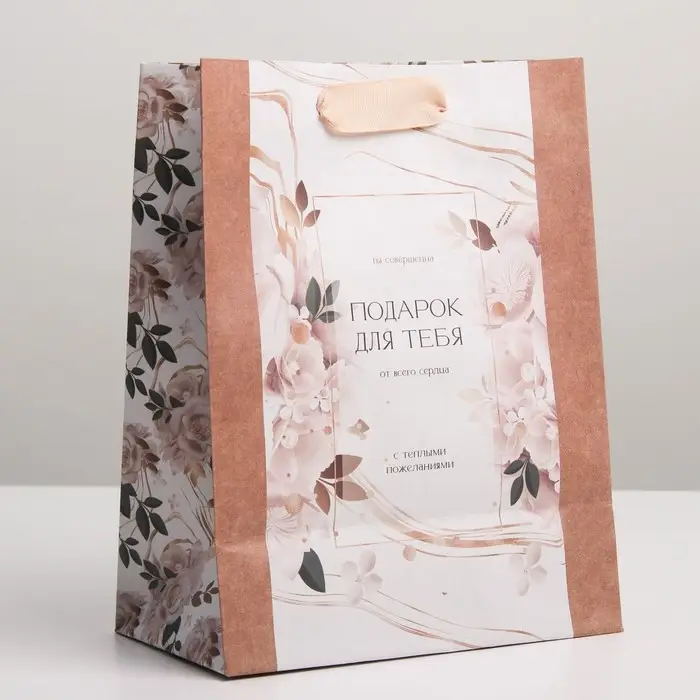 Пакет подарочный крафтовый, упаковка, «Подарок для тебя», MS 18 х 23 х 8 см