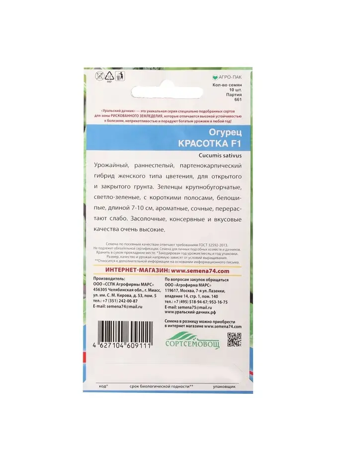 Семена Огурец "Красотка", F1, 10 шт
