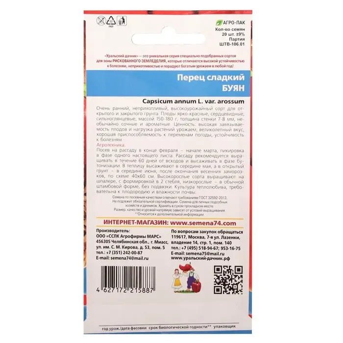Семена Перец сладкий "Буян", 20 шт