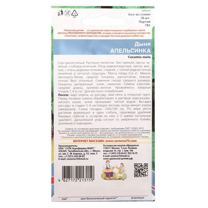 Семена Дыня "Апельсинка", 10 шт