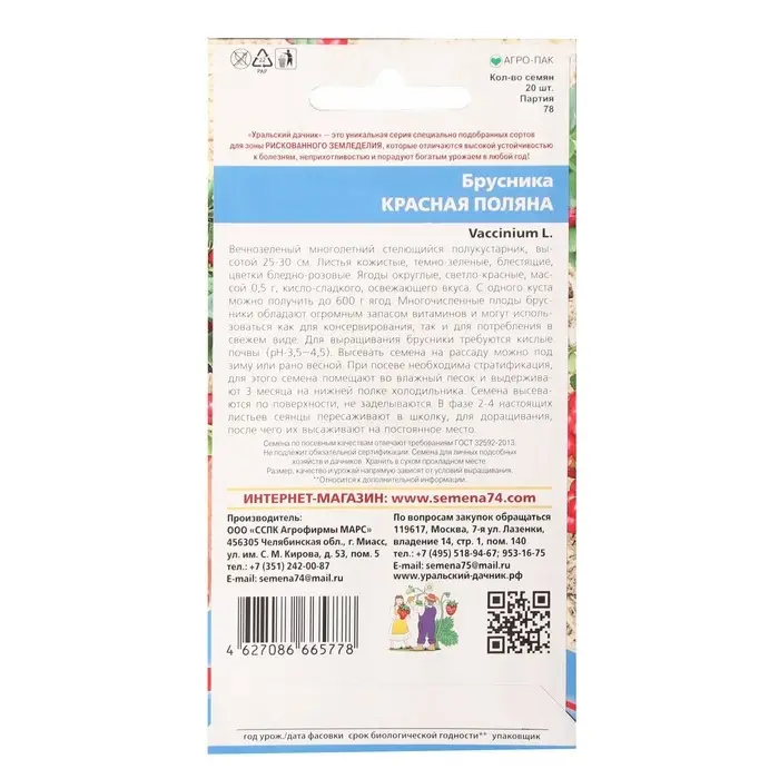 Семена Брусника "Красная поляна", 20 шт