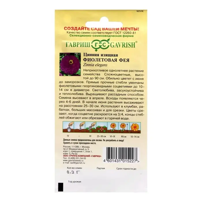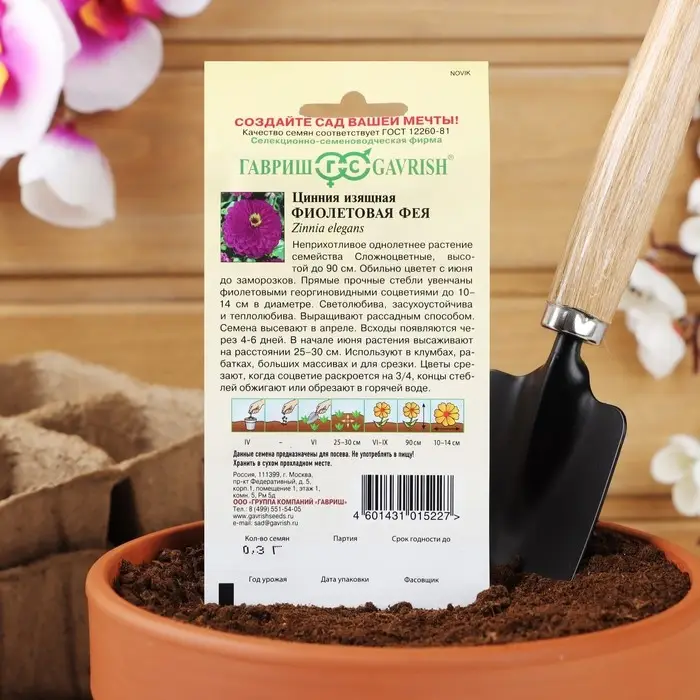 Семена цветов Цинния "Фиолетовая фея", ц/п, 0,3 г