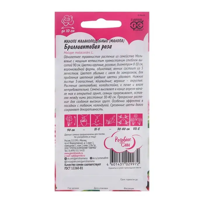 Семена цветов Малопе "Бриллиантовая роза", ц/п, 0,05 г