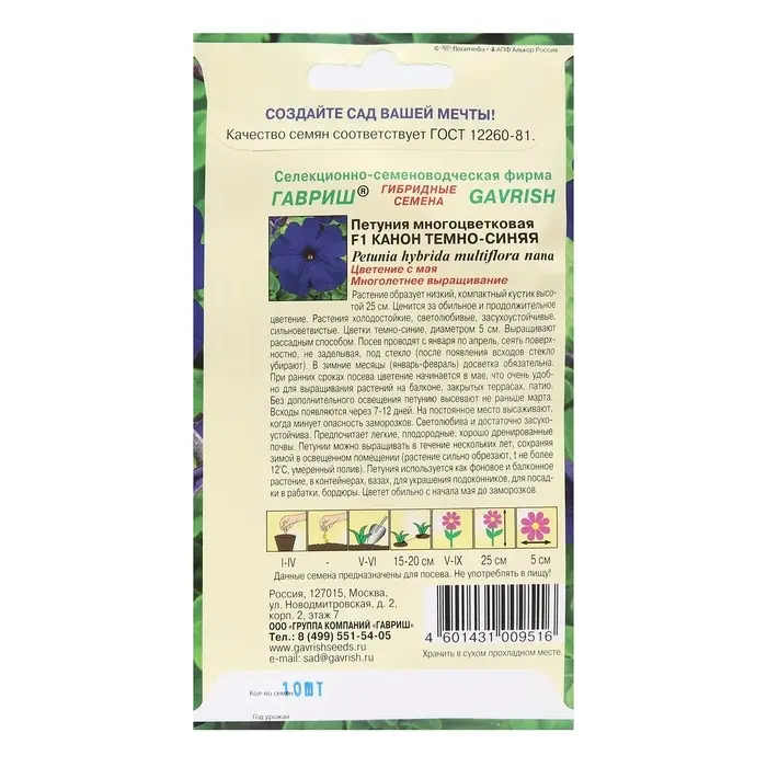 Семена цветов Петуния "Канон Темно-синяя F1", ц/п, гранула, пробирка, 7 шт